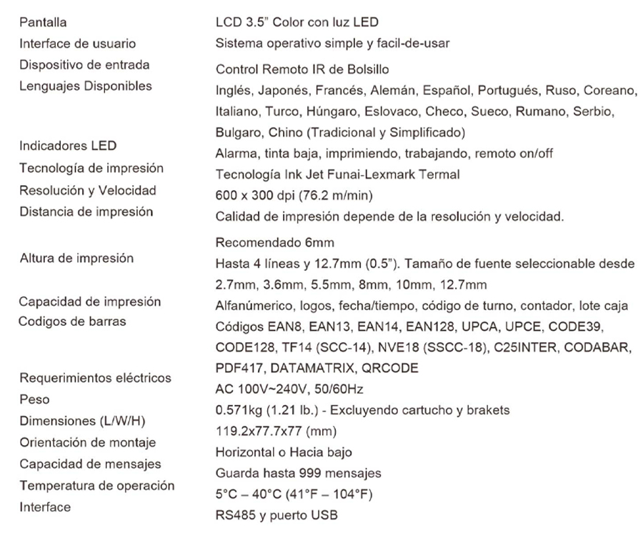 Impresora de tinta base solvente, con una interfaz de usuario sencilla para una fácil e intuitivo manejo.